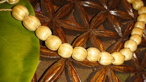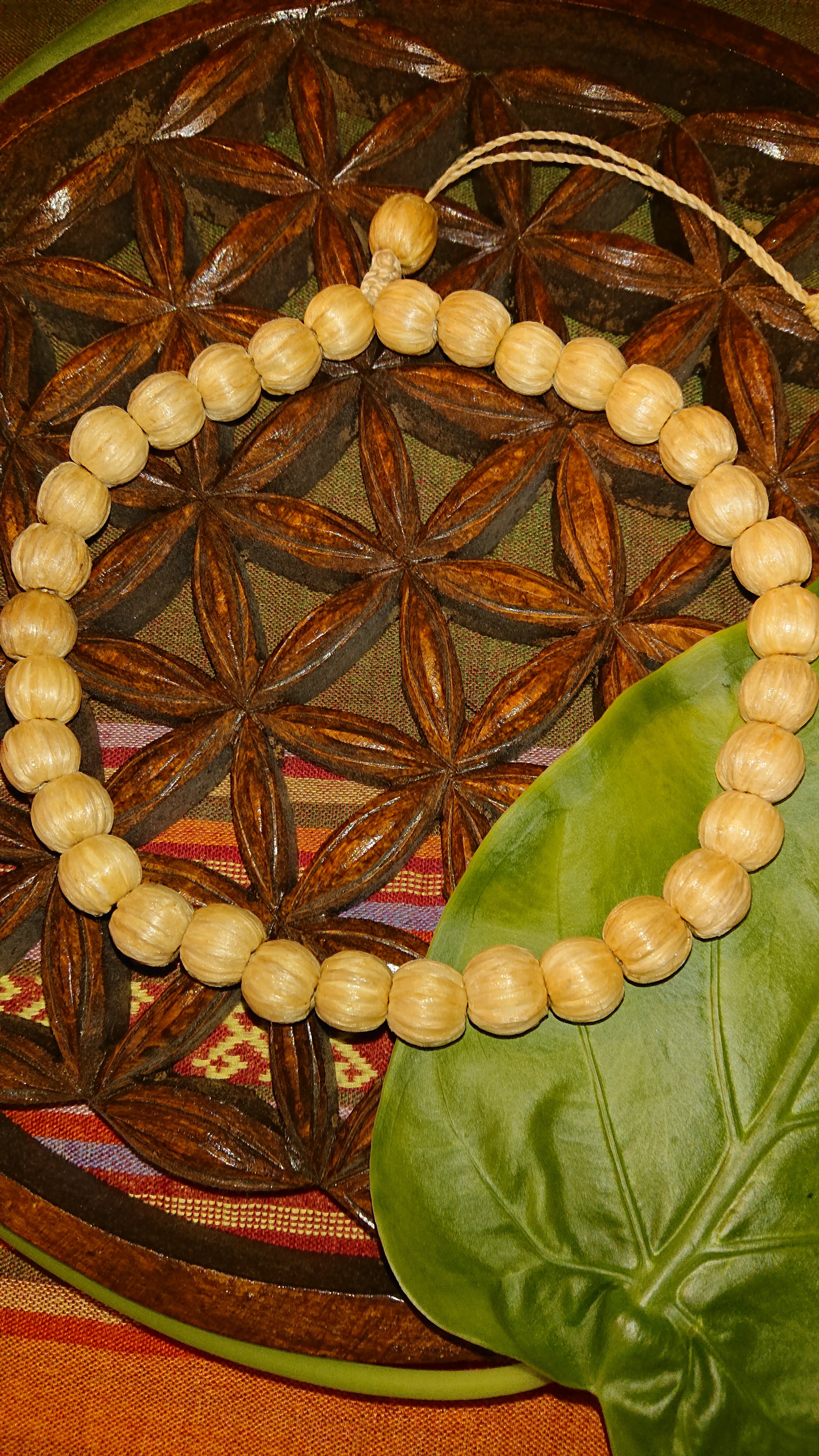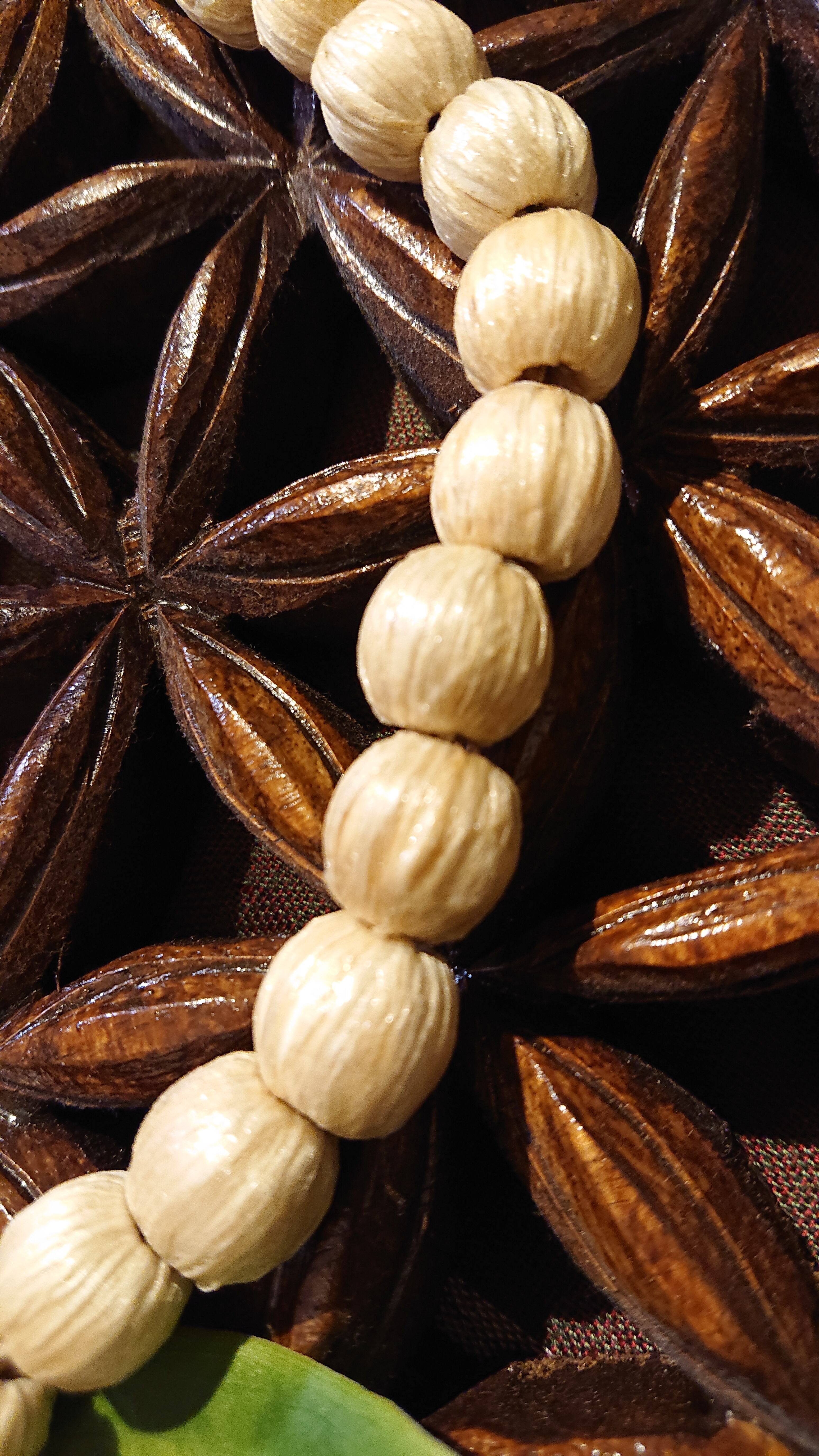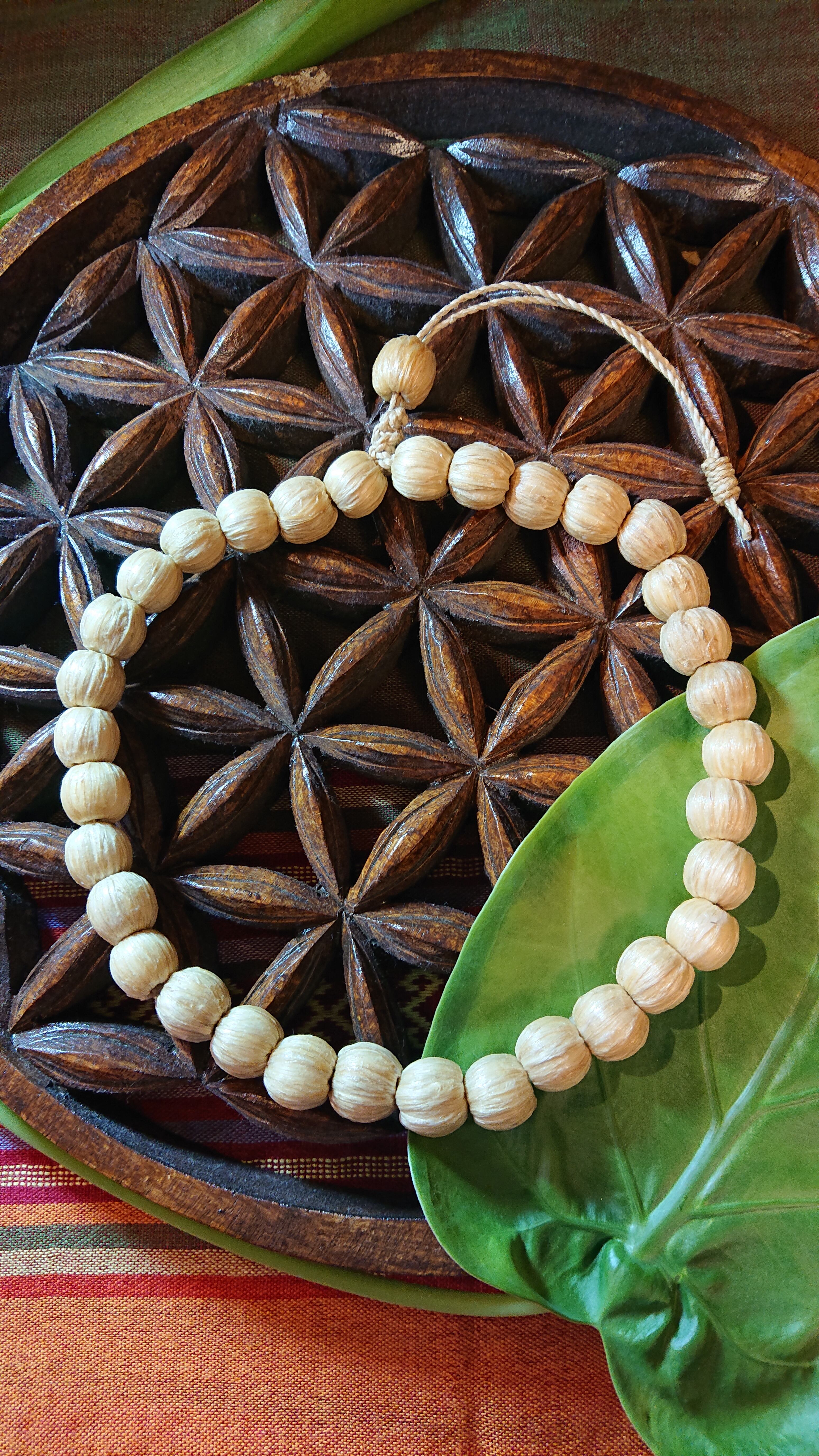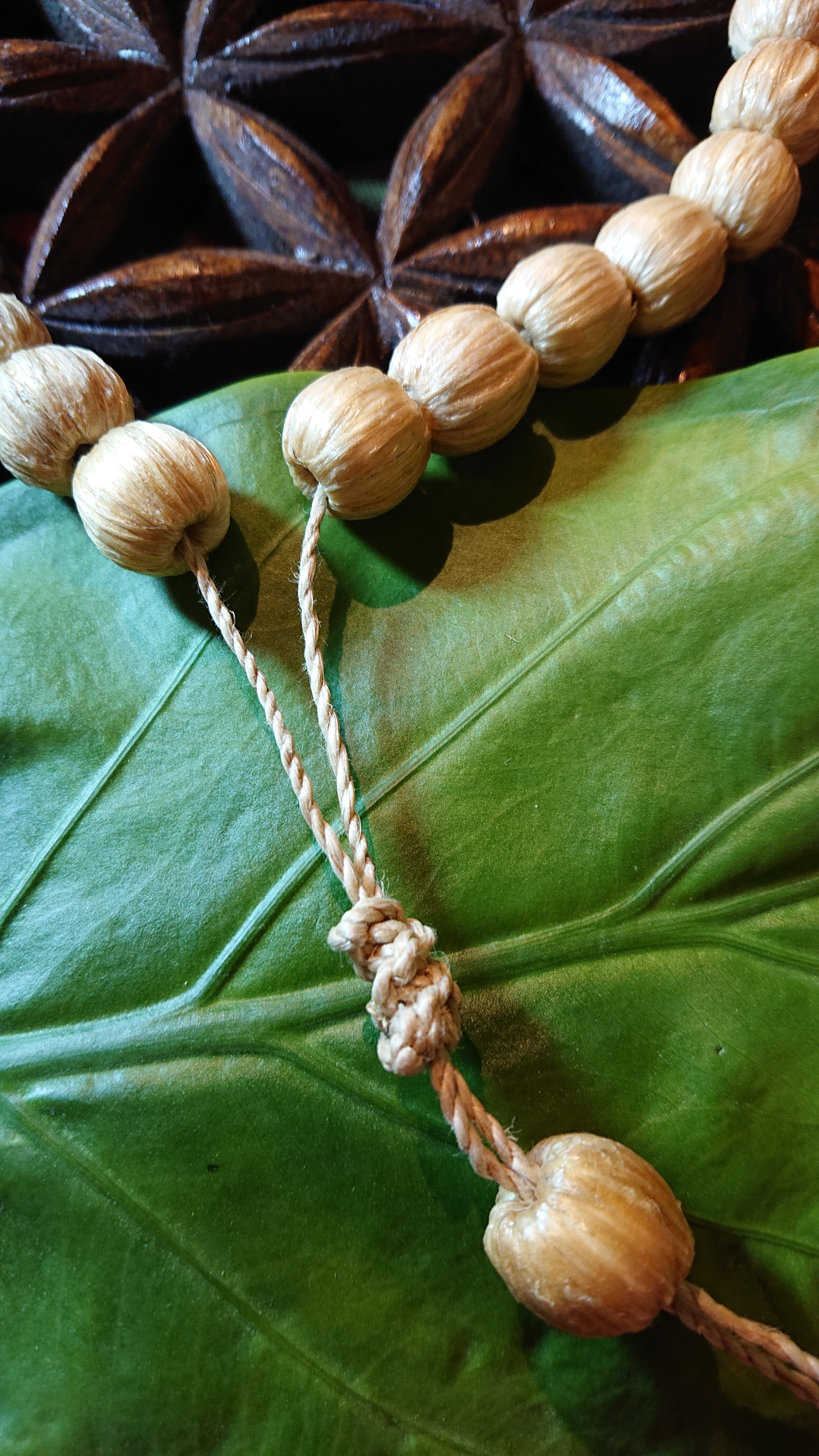 丸いウッド玉に精麻を巻いて