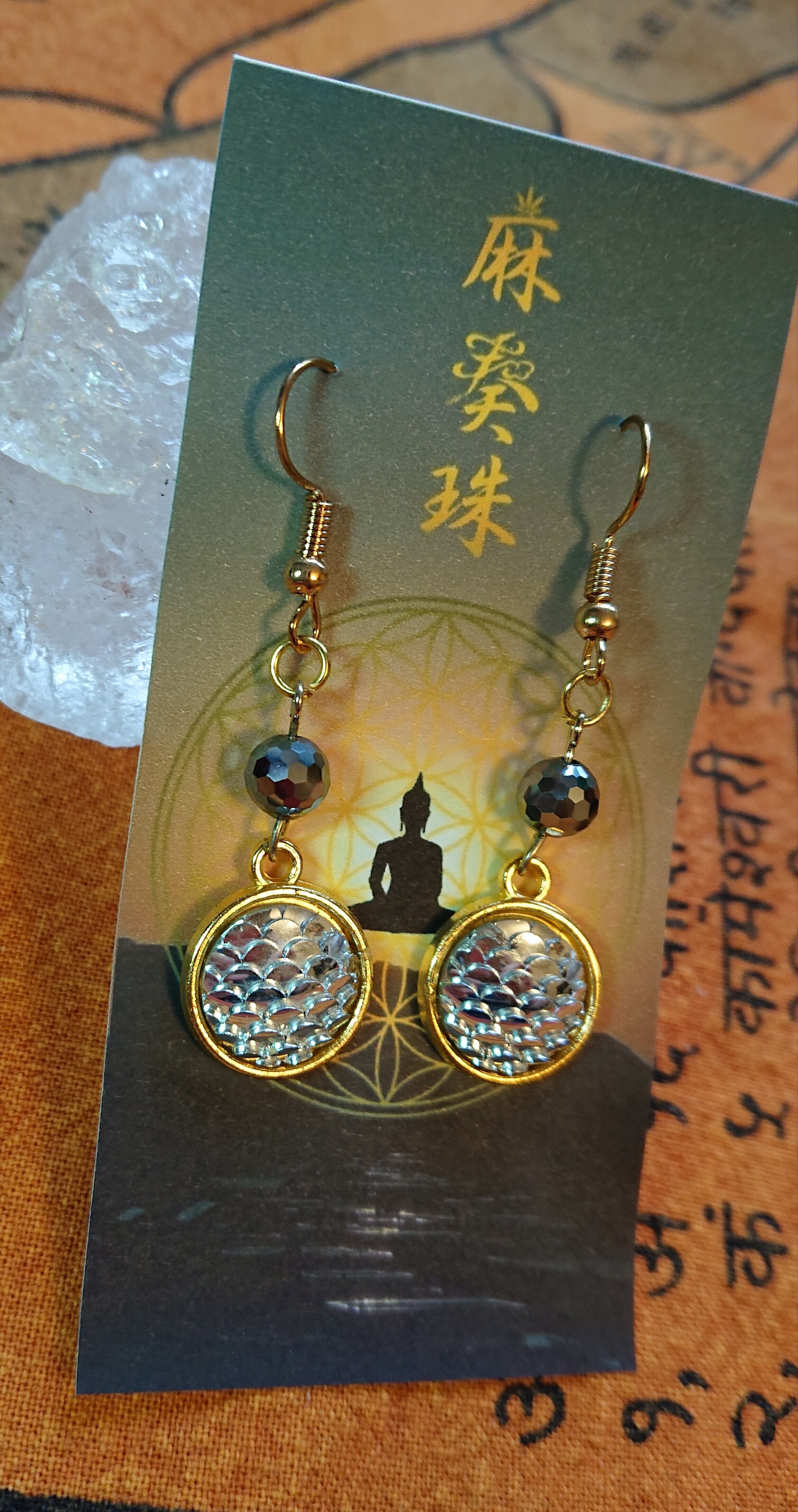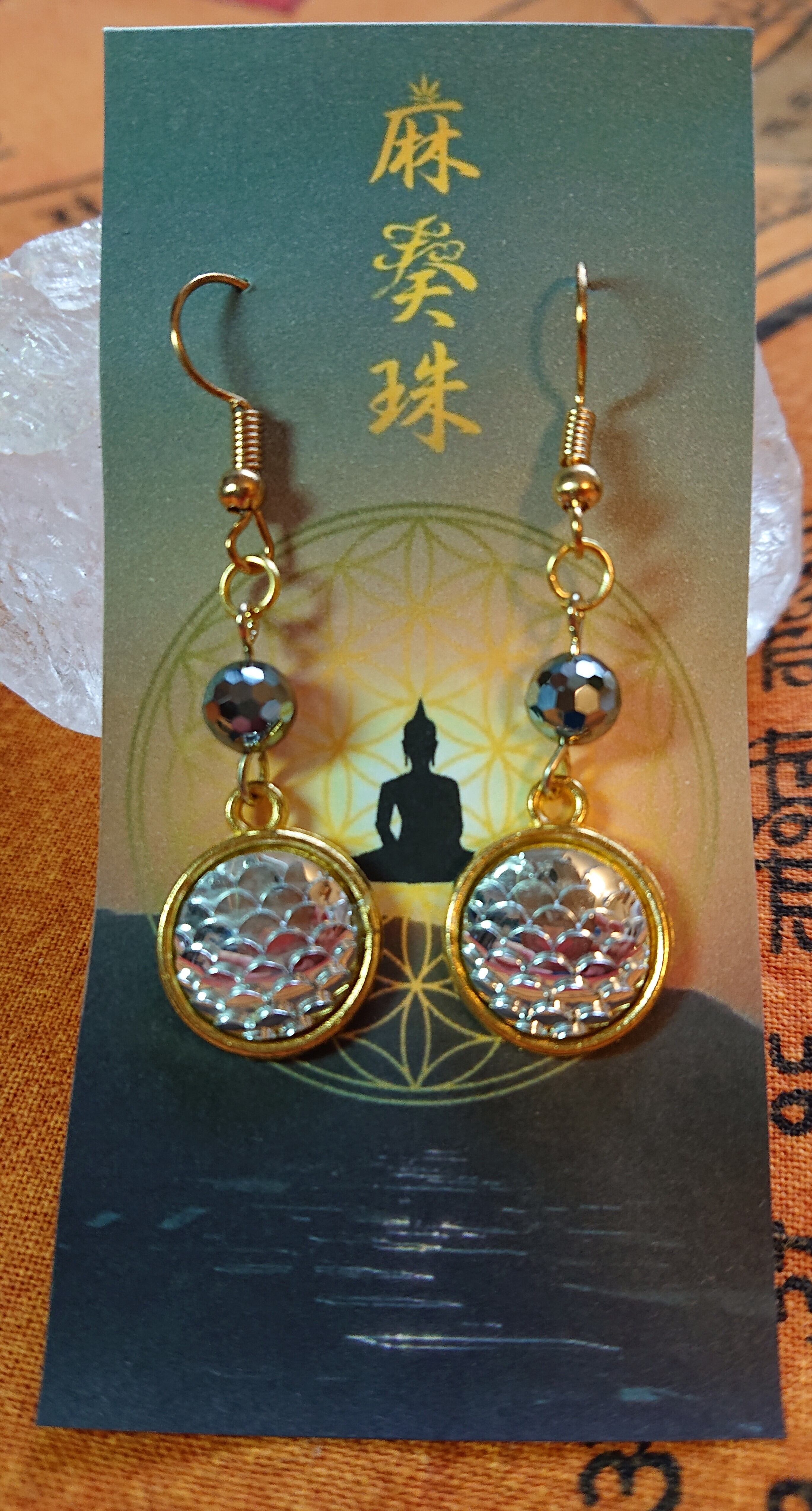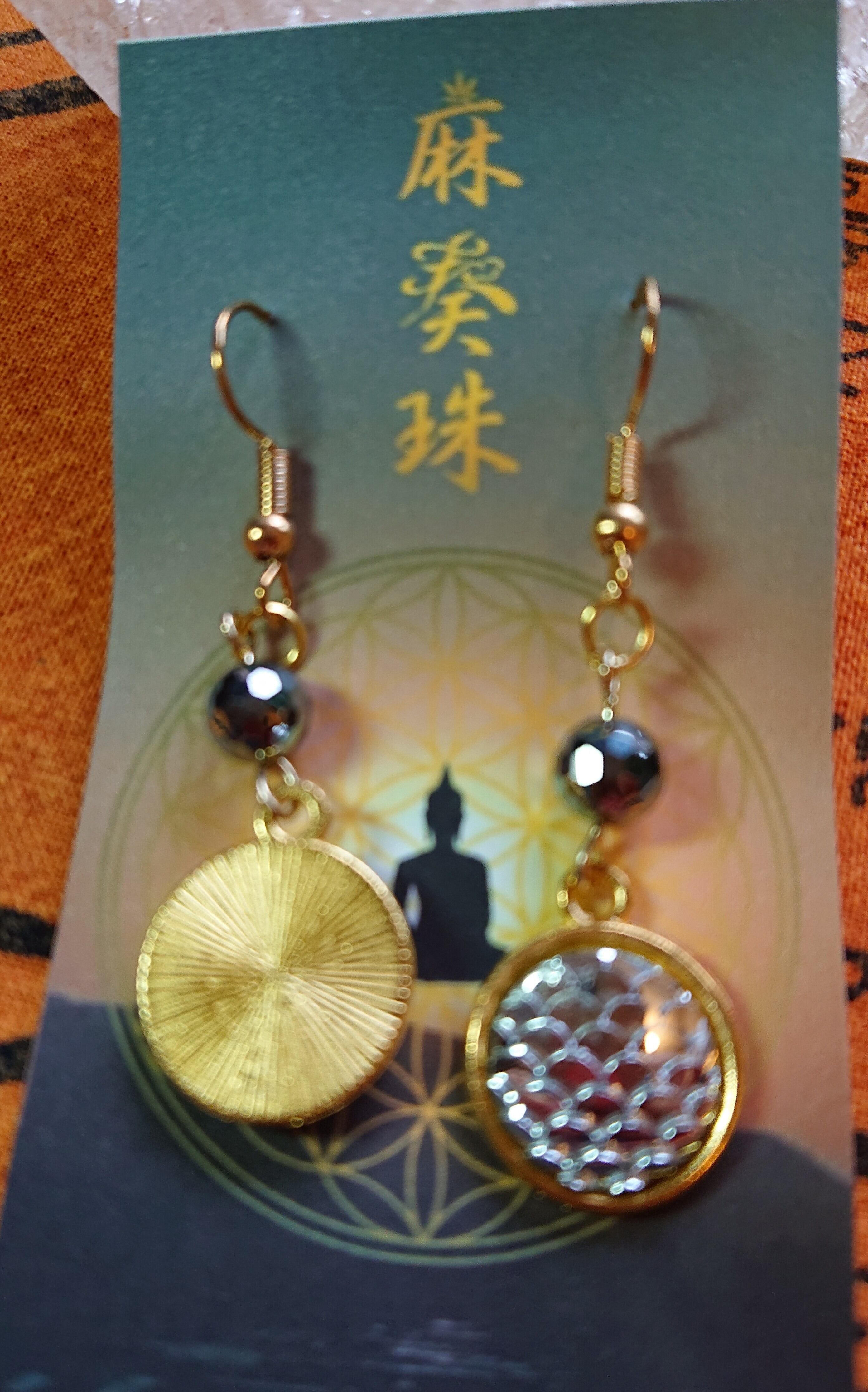 テラヘルツ玉(6 mm)を繋いだピアス。